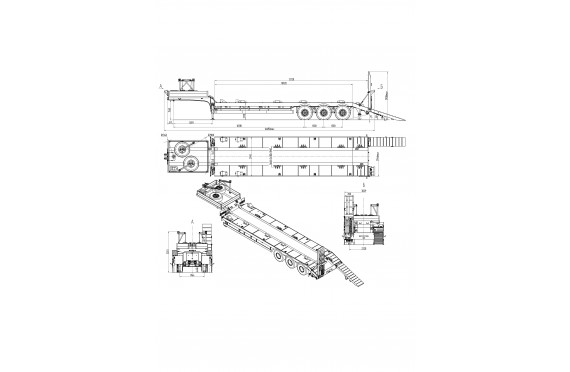 53000 кг, шины 12,00R20 /12+1, платформа 11200 (11900 до трапов) x 3150 мм, ССУ 1500 мм, рессорная подвеска
