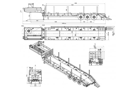 45100 кг, шины 395/85R20 или 445/65R22,5 / 6+1, платформа 10682 (12000 по трапам) x 2530 с уширителями до 3030 мм, ССУ 1550 мм, рессорная или пневматическая подвеска, раздвижные коники, передний щит, треугольные аппарели