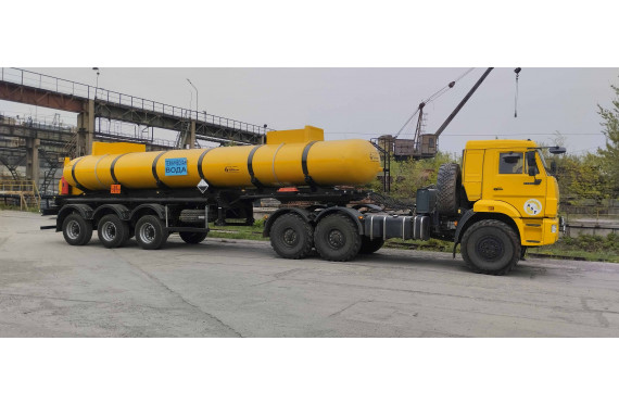 Материал: химстойкое стекловолокно, емкость: 22 куб.м., сечение: эллипсное, конструкция: однослойная или трехслойная (волокно, утеплитель, волокно), крепление: при помощи стяжных лент, перевозимые жидкости: кислоты/едкие вещества/нефть/техвода/щелочные и солевые растворы, автошины 425/85R21