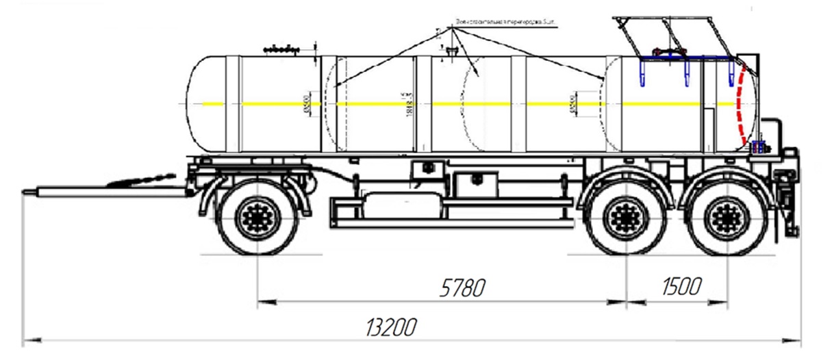 Стандартное оснащение: заливная горловина, дыхательный клапан, уровнемер, сливной кран в защитном коробе, волногасители, люк-лаз, лестница, площадка для обслуживания, складные перила